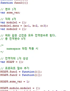 전체 글1930 [Javascript] 모듈패턴(module pattern) ※ 모듈패턴자바스크립트에서 모듈 패턴은 전역 영역에서 특정 변수영역을 보호하기 위해 하나의 객체 안의 private/pulbic 변수를 포함하는 클래스 형식의 개념을 구현모듈 패턴은 복잡한 코드를 구조화시키고 정리하는 데 최적의 패턴이다. 모듈패턴을 사용하면 개별적인 코드를 느슨하게 결합시킬 수 있는 장점이 있다. 즉 개발중에라도 끊임없는 요구사항에 따라 기능을 추가하거나 삭제하거나 자유롭게 사용이 가능하다. 모듈패턴은 여러개 패턴을 조합해서 사용한다.1) 네임스페이스패턴 2) 즉시 실행함수 3) 비공개 멤버와 특권멤버 4) 의존 관계 선언 예제를 따라해보면 이해가 될 것이다. 2016. 6. 6. [Javascript] 프로토타입과 비공개 멤버 생성자를 사용하여 객체를 만들어서 사용할 때 객체를 생성하면 객체안에 모든 변수 및 프로퍼티들이 새로 재생성 된다.이와 같은 방법은 객체를 한 개만 생성할 때는 문제가 되지 않지만 여러객체를 사용해야 할 경우에는 메모리낭비가 있다. 일반적인 클로저를 이용한 함수객체 생성법이다. 프로토타입도 객체이다. 메모리를 절약하기 위해서는 공통 프로퍼티와 메서드를 prototype에 추가해서 사용하는 것이 바람직하다. 2016. 6. 6. [Javascript] 비공개 프로퍼티, 메소드 자바스크립트에는 private, public, protected 와 같은 별도의 문법이 없다. 기본적으로는 객체의 모든 멤버는 public(공개)되어 있다. 공개가 되었다는 뜻은 외부에서 해당변수의 접근이 가능하다는 것이다.간단한 예제를 보자 비공개 멤버(private)별도의 문법은 존재하지 않지만 클로저를 이용하여 구현할 수 있다. 생성자 함수안에서 클로저를 만들면 유효범위안의 변수는 생성자 함수 외부에 노출 되지 않지만 객체의 공개 함수에서는 사용이 가능하다. 위와 같이 간단히 비공개 멤버를 구현할 수 있다. 비공개 멤버의 주의점비공개 변수값을 배열이나 객체를 반환하게 되면 비공개 변수 값을 수정할 수 있다. 따라서 비공개멤버를 반환할 때는 객체나 배열이 아닌 변수를 반환하는 것이 좋으며 객체나 배열.. 2016. 6. 6. [Javascript] 의존관계 선언 패턴 객체생성패턴의 두 번째로는 의존관계선언 패턴 이다.의존관계 : 어느 사물의 존재나 성질이 다른 사물에 의하여 규정되고 제약되는 관계 ( 사전적 정의 ) 말이 어렵긴 하지만 소스코드를 보면 이해가 쉬울 것이다.예를 들어 window.history.go(-1); 을 사용한다고 가정했을 시에 위의 소스와 같이 var his = window.history; 를 변수로 선언하여 사용한다.window.history 는 전역이고 his 지역이다.위와 같은 방식을 의존관계선언 패턴이라고 한다. 프로그래밍을 해본 사람의 입장에서는 당연하고 간단한 패턴이지만 상당한 장점들이 있다.1) 의존관계가 명시적으로 선언 되어 있어 코드를 사용하는 사람이 페이지에 포함시켜야 하는 파일이 무엇인지 알 수 있다. 2) 함수의 첫머리에 .. 2016. 6. 6. [Javascript] 네임스페이스(namespace) 패턴 ※ 네임스페이스 패턴네임스페이스 패턴을 사용하는 이유는 수많은 함수, 객체, 변수들로 전역으로 되어 선언 되어 있는 것을 줄이고자 하는데 큰 목적이 있다.이와 같은 패턴을 사용하는 이유는 전역변수를 적게 쓰면 미세하게나마 메모리를 줄일 수 있고, 작은 홈페이지를 만드는데에는 큰 지장이 없으나 규모가 큰 홈페이지를 만들었을 시에는 라이브러리, 트래킹코드 등 서드파티(3자)의 코드를 삽입하게 될 때 변수명의 충돌을 방지할 수 있다. 꼭 사용하길 바란다. 간단한 예제를 보자전역객체 5개를 생성했던 일반 코드에서 1개로 줄였다.네임스페이스 패턴을 적용시에 전역객체인 MYAPP을 한 개만 생성하여 해당 객체에 프로퍼티를 동적으로 생성하여 사용을 한다. 장점이 있다면 단점도 있다.※ 단점1. 모든 변수와 함수에 접.. 2016. 6. 6. [Javascript] 객체생성패턴 자바스크립트 패턴을 공부하게 될 시 객체생성 패턴에 대해서 다루게 된다. 자바스크립트는 객체로 이루어진 언어이다. 이 개념은 중요하므로 꼭 숙지하고 넘어가자 객체 생성패턴에는1) 네임스페이스 패턴 2) 의존관계 선언 패턴 3) 모듈 패턴 4) 샌드박스 패턴 5) 체이닝 패턴이 있다. 다음 포스트 부터 하나씩 알아보도록 하자. 2016. 6. 6. 이전 1 ··· 308 309 310 311 312 313 314 ··· 322 다음