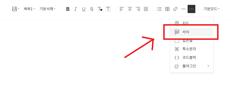 그리고 이제 글쓰기를 하실 때 서식을 추가하면서 중간중간에 작성 할 수 있습니다.
