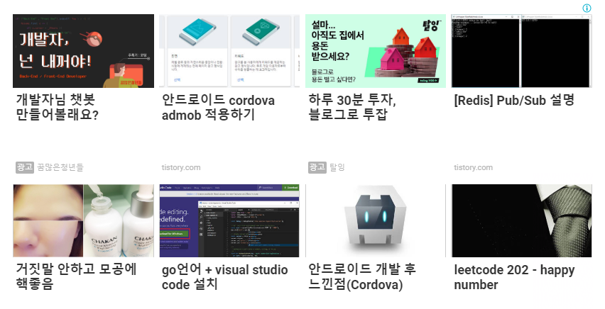 2020/04/24 - [알면 좋은 것/티스토리&애드센스] - 티스토리 목록에 인피드 광고 추가 삽입하기