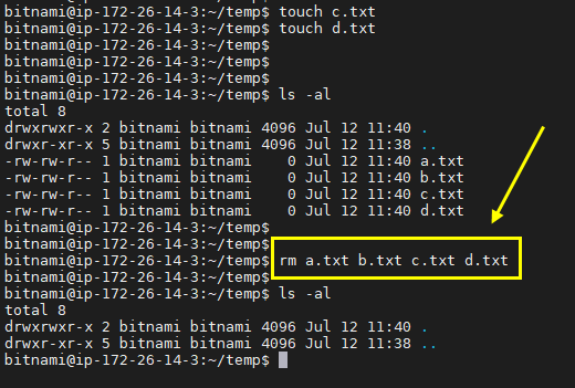 bitnami@172-26-14-3# rm 파일명 파일명 파일명 파일명 ...