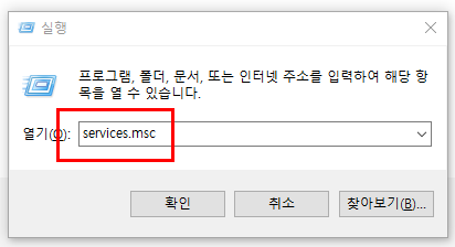 대체적으로 윈도우 업데이트가 팬소음의 가장 큰 원인이며 자동 업데이트를 중지 해놓으면 90%이상은 팬소음이 사라집니다. 우선 시작+R 버튼을 눌러 실행 명령창을 켜서 services.msc 명령어를 입력후 서비스 창으로 들어가 줍니다.