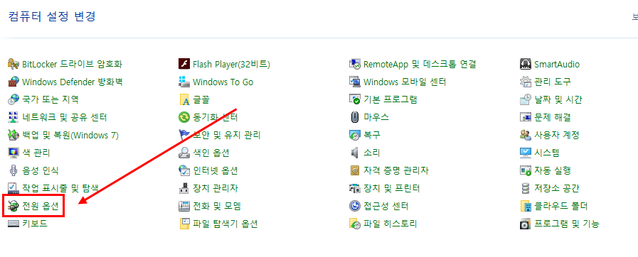 [제어판]-[전원옵션]으로 우선 들어가 줍니다.