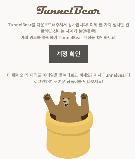 하지만 모바일에서 진행을 하려면 VPN을 설정해줄 수 있는 앱을 설치하셔야 합니다. 우리는 터널베어라는 어플을 설치할 것입니다.