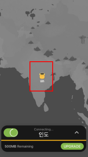 앱을 접속하면 지구의 국가들이 여러개 보일텐데 손가락으로 스크롤을 하여 인도의 나라를 찾아주도록 합니다. 인도는 어렵지 않게 금방 찾으실 수 있습니다. 인도는 아래와 같은 화면에서 찾으실 수 있습니다. 처음에는 500MB까지는 무료로 제공이 되고 그 이후에는 유료로 사용해야 하니 유튜브 프리미엄을 결제를 할 떄에만 사용하도록 해줍시다.