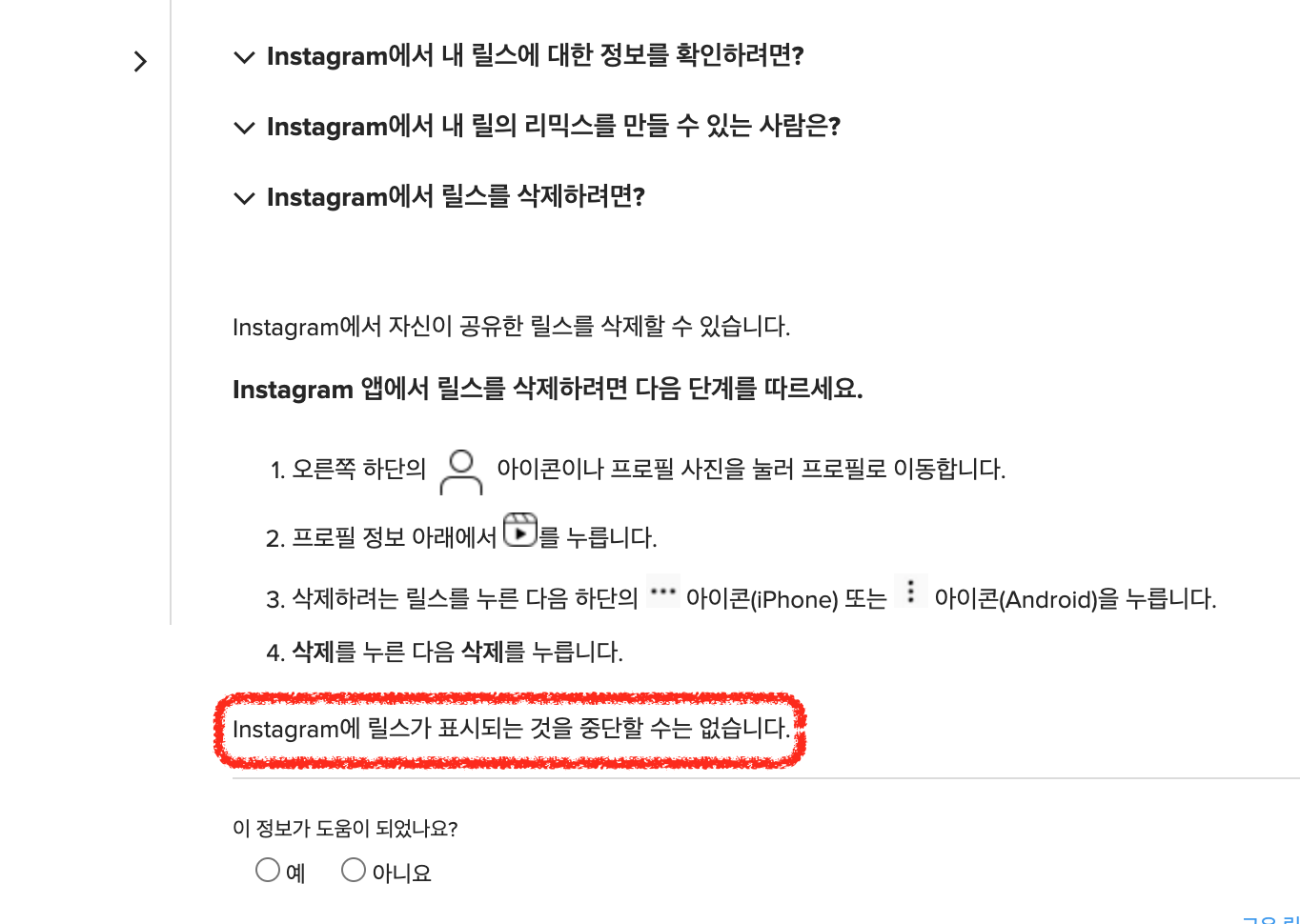 인스타그램 릴스 제거 방법 공식문서 확인해보기