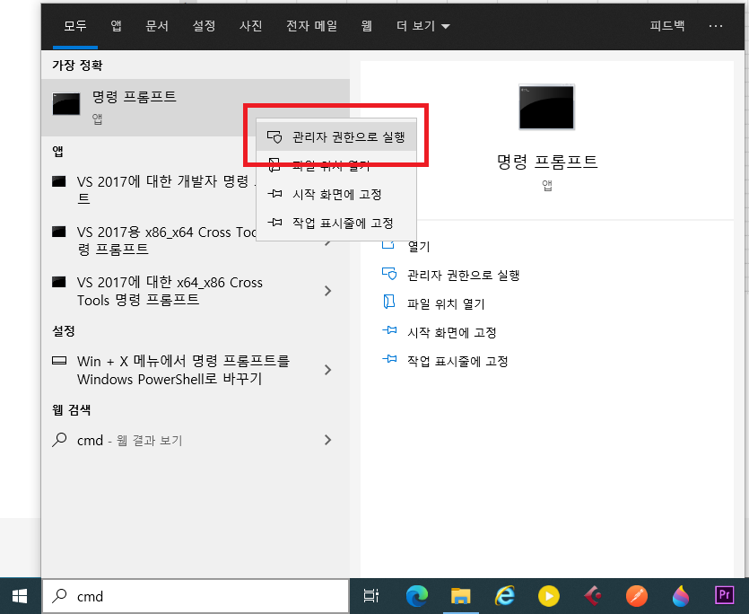 1. 관리자모드로 CMD를 열어주시길 바랍니다.
