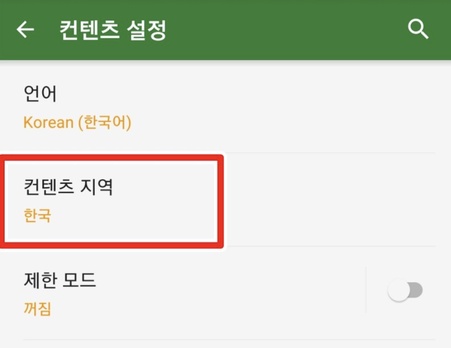 - 콘텐츠 지역 - 국가별로 설정할 수 있습니다.
