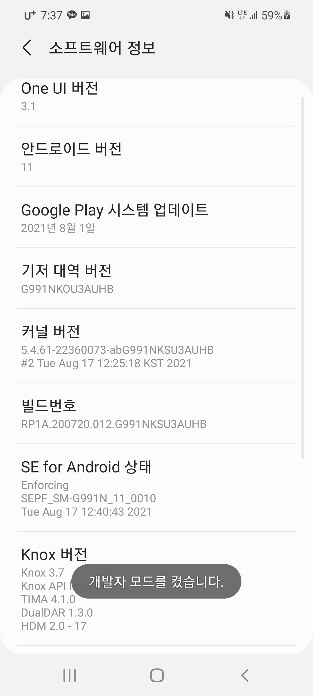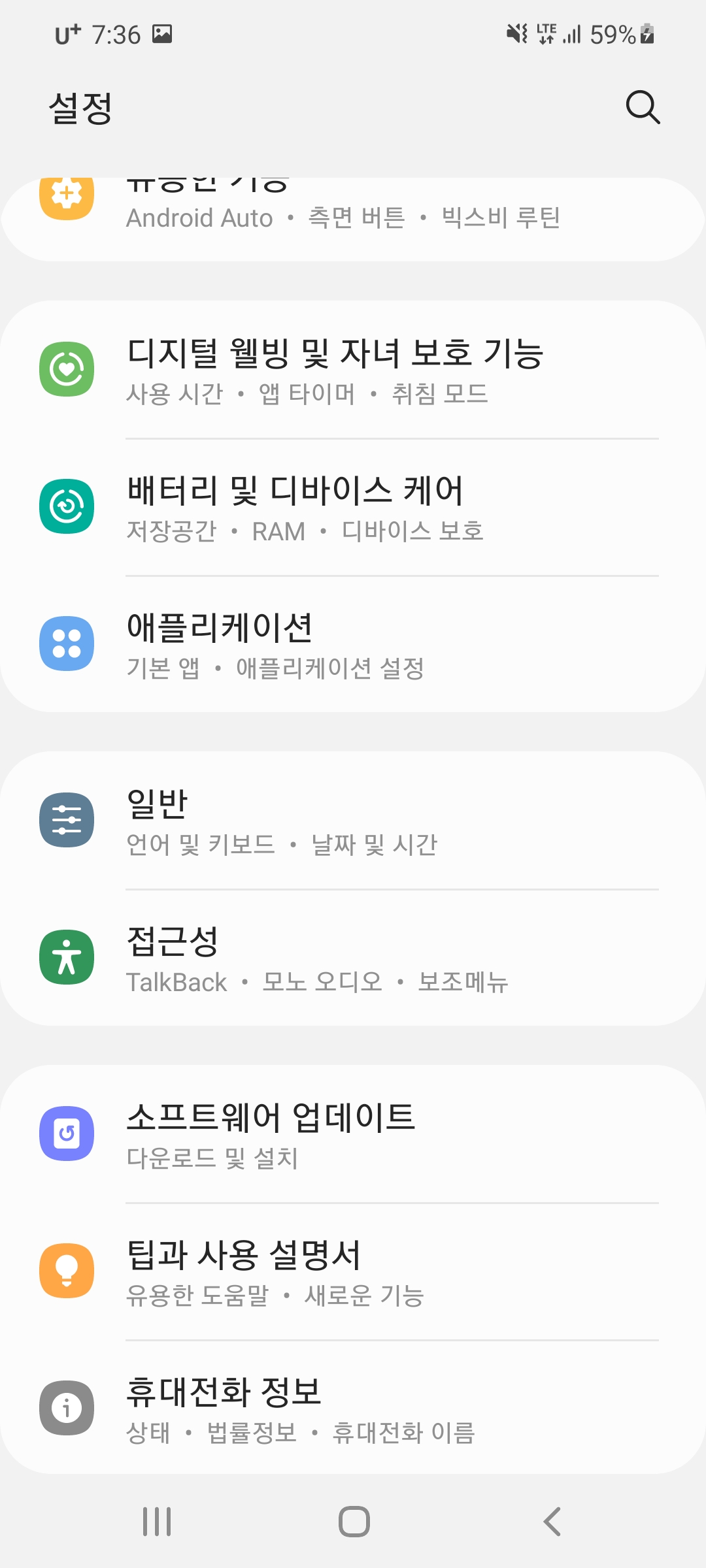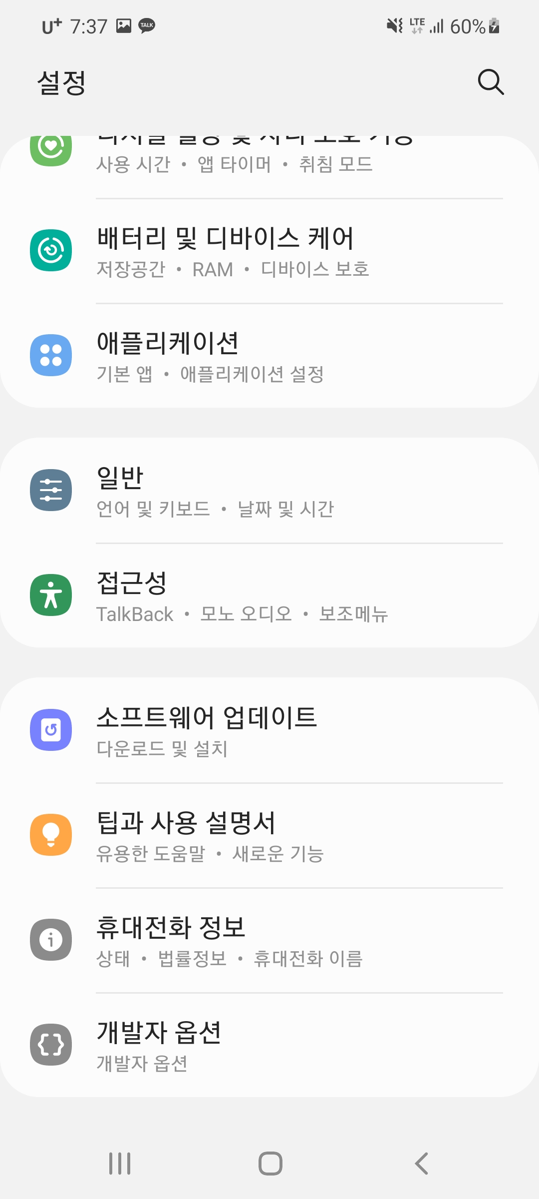 우선 개발자모드를 실행해야 하기 때문에 설정으로 들어가서 휴대전화 정보 탭을 들어가신 후에 소프트웨어 정보까지 들어가 줍니다.