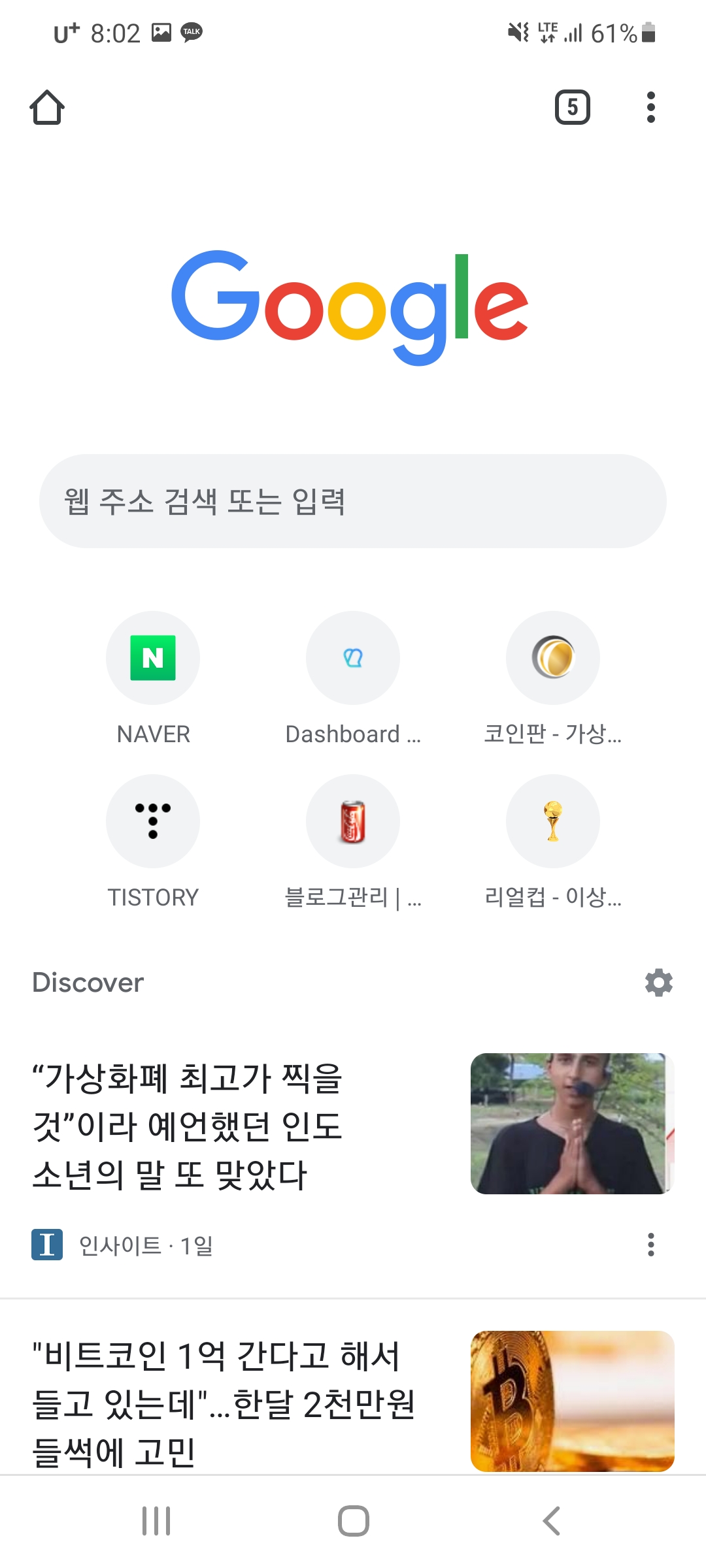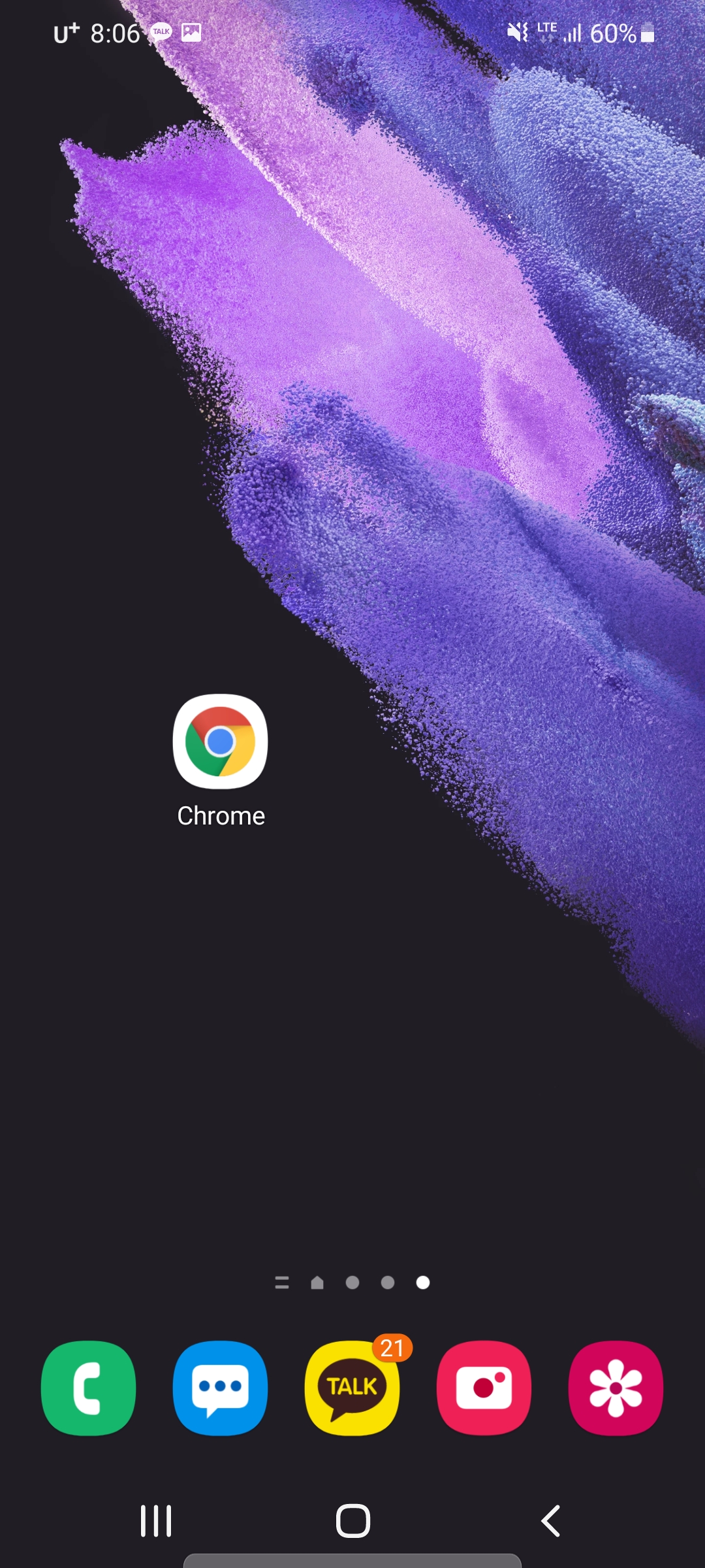 안드로이드를 사용하면 대부분의 사람들은 모바일 크롬브라우저를 사용하게 됩니다. 아래에 화면처럼 크롬 브라우저를 열어줍니다.
