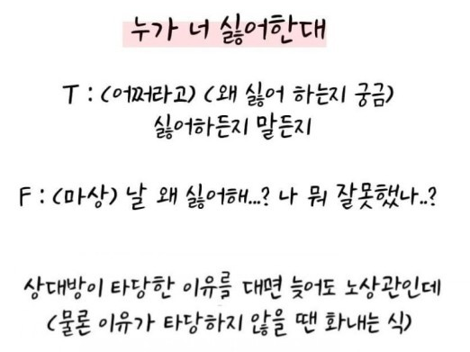 최근 들어 MBTI 검사가 많이 진행이 되고 있습니다. 평소에 MBTI에 관심이 있는 사람들은 본인의 유형이 어떤 것인지 잘 압니다. 하지만 각각의 유형에서 어떤 차이가 있는지에 대해서는 잘 모르는 경향이 많습니다. 오늘은 MBTI 중 T와 F의 차이에 대해서 알아보는 시간을 갖도록 하겠습니다.