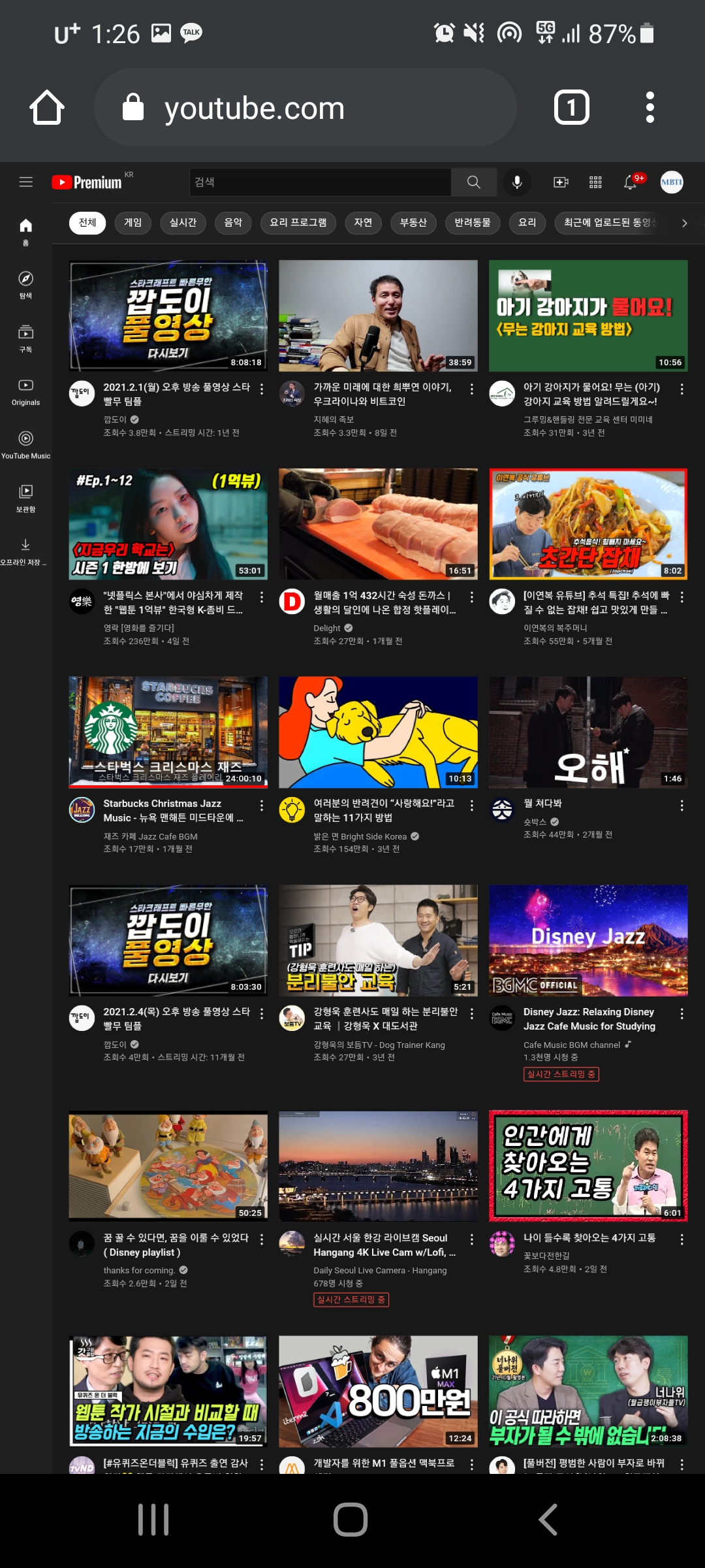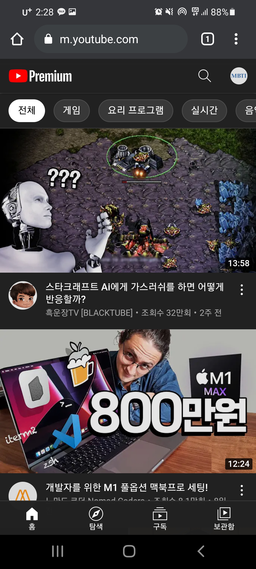 그러면 모바일용 유튜브로 접속하시는 것을 확인 할 수 있습니다.