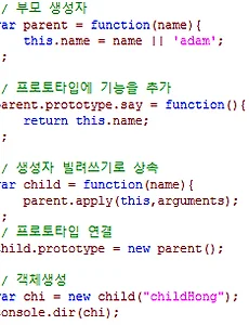 전체 글1930 [Javascript] 클래스 방식의 상속패턴 #3 - 생성자 빌려쓰고 프로토타입 지정해주기 앞서 본 2가지의 패턴은기본패턴은 프로토타입은 상속받지만 this 전역의 프로퍼티를 상속받지 못했고생성자빌려쓰기는 this 전역을 상속받지만 프로토타입을 상속받지 못하였다 정상적으로 상속이 된 것을 확인할 수 있다. 다만 부모 생성자를 비효율적으로 두 번 호출하는 단점이 있으므로 좋은 코드는 아니다. 2016. 6. 7. [Javascript] 클래스 방식의 상속패턴 #2 - 생성자 빌려쓰기 생성자 빌려쓰기는 자식에서 부모로 인자를 전달하지 못했던 패턴#1의 대응책이다.이 패턴은 부모가 생성자 함수의 this에 자식 객체를 바인딩한 다음, 자식생성자가 받은 인자들을 모두 넘겨준다 ※ 생성자 빌려쓰기 패턴은 부모 생성자 함수 내부의 this에 추가된 프로퍼티만 물려받고 prototype에 추가된 멤버는 상속되지 않는다 예제를 보면 쉽게 알 수 있다. arguments의 타입을 찍은 것은 apply 메소드는 (this, 배열로 된 것) 만 인자로 넘겨 줄 수 있다child 객체는 parent로 부터 this로 선언된 name은 받아왔지만 prototype으로 선언된 say() 함수는 받지 못한다. 여기서의 상속은 부모가 가진 자신만의 프로퍼티를 자식의 프로퍼티로 복사해주는 일회성 동작이고, __.. 2016. 6. 6. [Javascript] 클래스 방식의 상속패턴 #1 - 기본패턴 자바스크립트에서 상속이란 주제를 다룰 때 클래스 방식의 용어를 듣게 된다. 하지만 자바스크립트에는 클래스라는 개념이 없다. 자바스크립트는 매우 유연하고 동적인 언어이어서 상속패턴을 새롭게 구현을 해서 사용할 수 있다. 궁극적인 목표를 잊어서는 안된다. 자바스크립트에서 상속을 하는 이유는 코드를 재사용하기 위함이다. 상속은 하나의 방법이지 유일한 방법은 아니다. 코드의 재사용을 접근할 때 GOF가 한 말로 '클래스 상속보다 객체 합성을 우선시 해야한다' 라는 말을 주의 깊게 생각 해보자 [자바스크립트 코딩기법과 핵심패턴]의 내용에 의하면 5가지 클래스 방식의 상속 패턴을 사용할 수 있다.1) 기본패턴2) 생성자 빌려쓰기3) 생성자 빌려쓰고 프로토타입 지정해주기4) 프로토타입 공유5) 임시 생성자 우선 기본.. 2016. 6. 6. [Javascript] method, 메서드 객체를 생성하게 되면 this라는 전역변수에 동적으로 추가를 하는데 이는 객체를 생성시마다 this에 있는 변수, 함수, 프로퍼티 등을 모두 생성하게 되어 메모리를 많이 잡아 먹는다.이를 해결하기 위해서 prototype에 공통되는 함수, 재사용 되는 함수를 프로퍼티에 추가해서 사용을 했었다. 자바스크립트 객체생성패턴에서 필수로 알아야 하는 것은 아닌 것 같다. 이런 방법도 있구나 라고 한 번 보고 익히는 것이 좋을 듯 싶다. method는 prototype에 추가해서 사용할 수 있으며 구현 코드는 다음과 같다. 2016. 6. 6. [Javascript] 체이닝 패턴 체이닝패턴은 간단하다.여러개의 함수를 한줄로 호출 할 수 있도록 하는 패턴이다. 코드량이 줄고 간결해져 하나의 문장처럼 읽을 수 있다. 반면에 디버깅 하기는 힘들 수도 있다. 2016. 6. 6. [Javascript] 샌드박스 패턴(sandbox pattern) ※ 샌드박스 (Sandbox)샌드박스를 이해하려면 먼저 어원을 알아보기로 하자.샌드박스는 영어 그대로 해석하자면 "모래상자"라는 뜻이다. 아이들이 놀이터에서 놀 수 있는 공간을 의미한다. 모래 상자 안에는 당연히 모래가 있겠고 아이들이 모래를 가지고 놀다보면 그 공간은 상당히 더러워(?)질 수가 있다. 어원에 담겨 있듯이 샌드박스란 정해진 공간 안에서 형식 없이 마음껏 자유자재로 놀아라는 뜻을 가지고 있다. 즉 컴퓨터에서는 어떤 프로그램/코드를 실행할 때 제한된 공간에서 벗어나지 않고 허용되는 범위 안에서 마음껏 작업을 할 수 있음을 뜻한다. 자바스크립트에서 샌드박스 패턴을 사용하면 콜백함수로 코드를 감싸기 때문에 전역 네임스페이스를 보호할 수 있다. 샌드박스 생성자구현 (자바스크립트 코딩기법과 핵심패턴.. 2016. 6. 6. 이전 1 ··· 307 308 309 310 311 312 313 ··· 322 다음